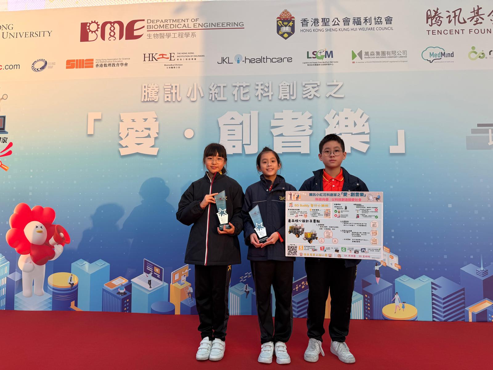 本校學生於1月10日參加騰訊小紅花科創家之「愛創耆樂」設計賽,向公眾及評審介紹自己設計的樂齡科技產品GO Buddy 智行小跟班,並獲得最佳設計大獎及最具創意及創新獎。